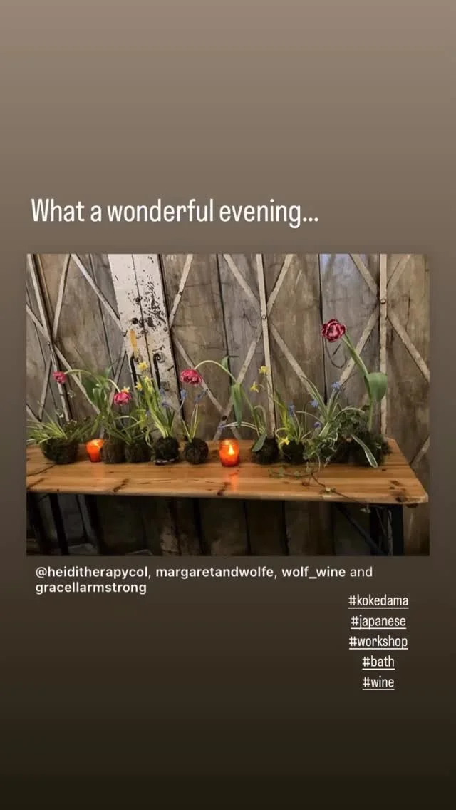 I offer seasonal flower workshops across the UK, using natural and foraged materials — from mindful posy-making to Japanese Kokedama.